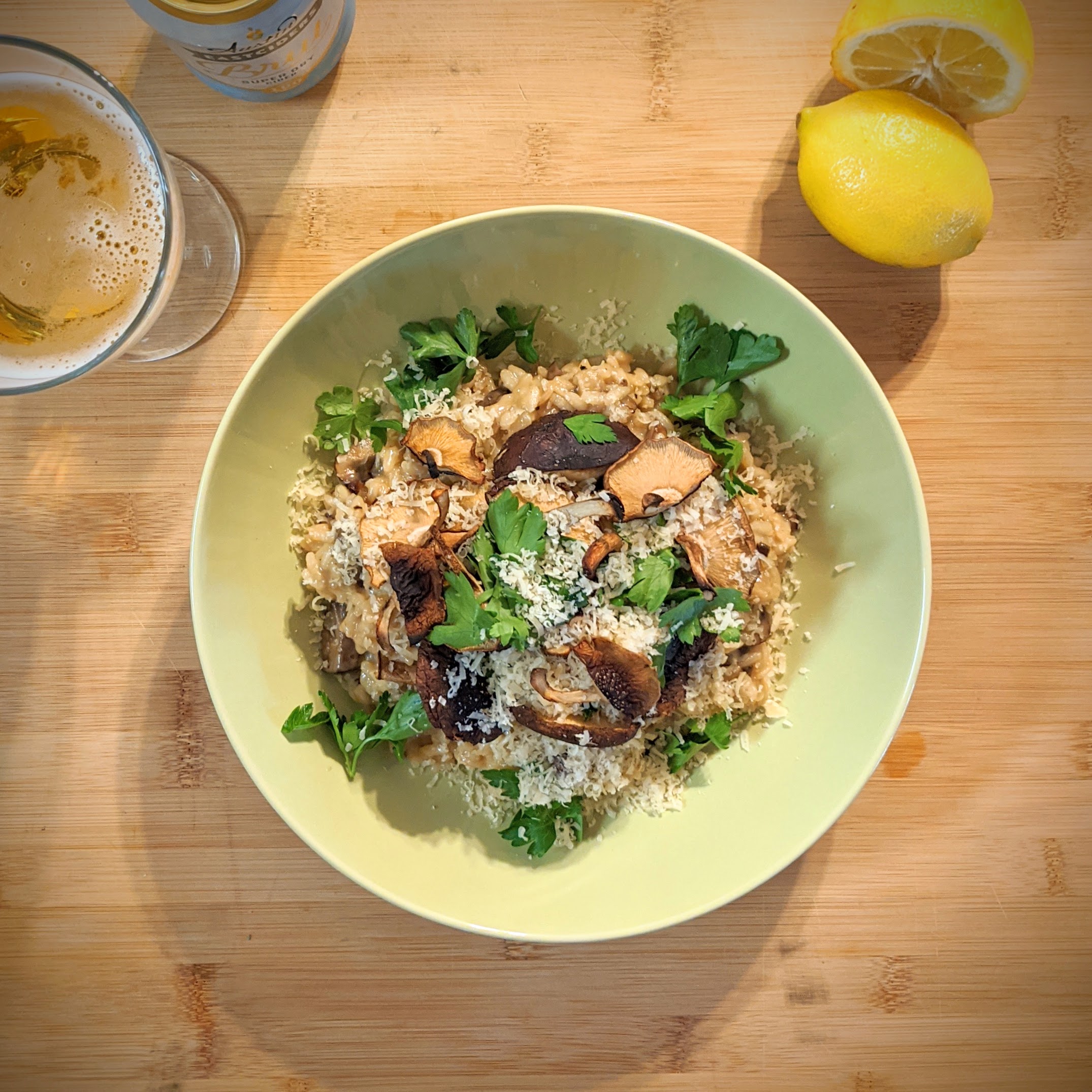 Risotto is one of those recipes that sound tough but really isn’t that tricky (but is totally tasty). This recipe is a mash between a Jamie Oliver method and a Tasty 101 video. Jamie asked for dried mushrooms (proved to be hard to find and expensive here) and Tasty didn’t have enough mushroom punch (so we added back the roasted topper). The best of both worlds, and easier than I’ve previously imagined!